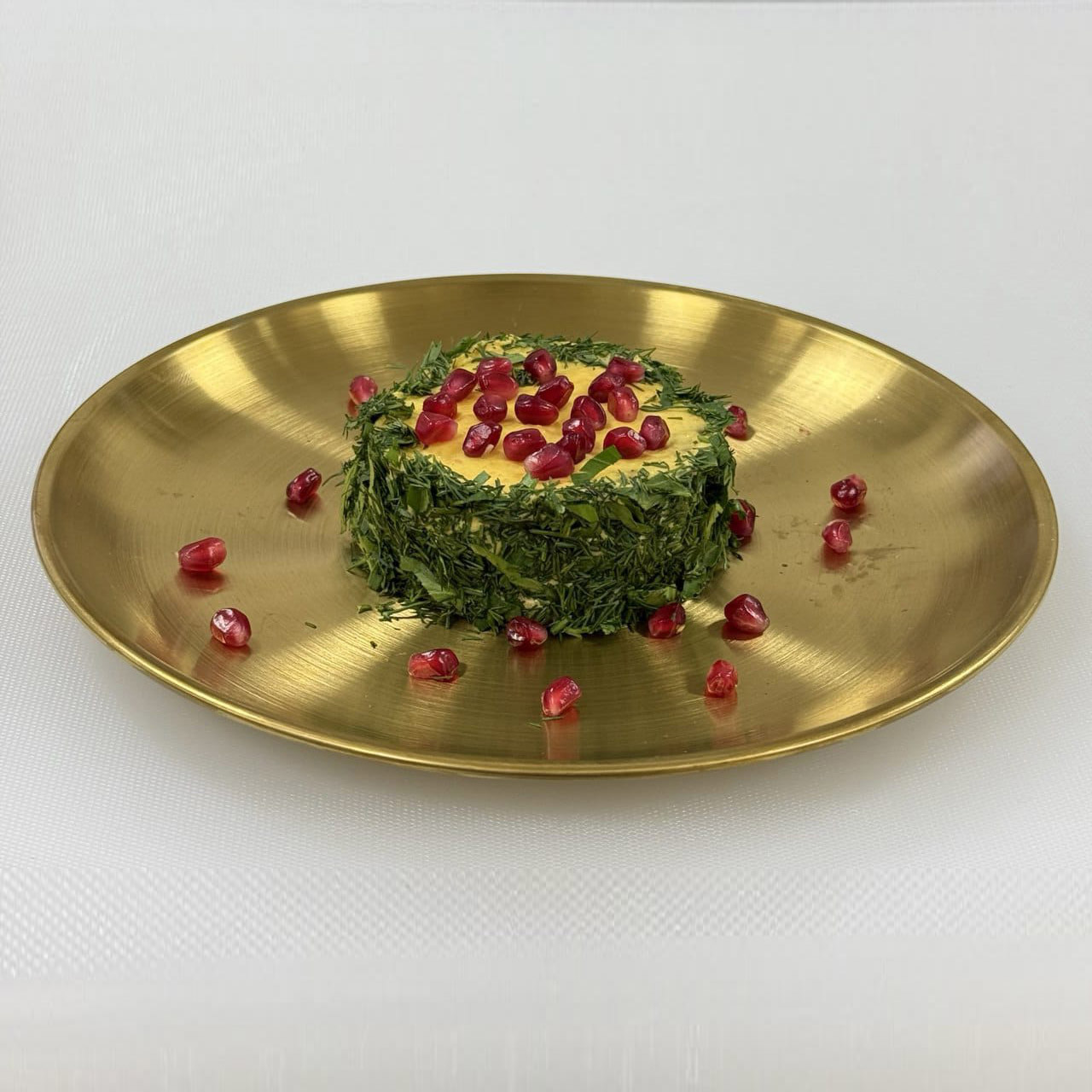 Состав: печень куриная, лук, морковь, яйцо куриное, мука, майонез, зелень, зерна граната