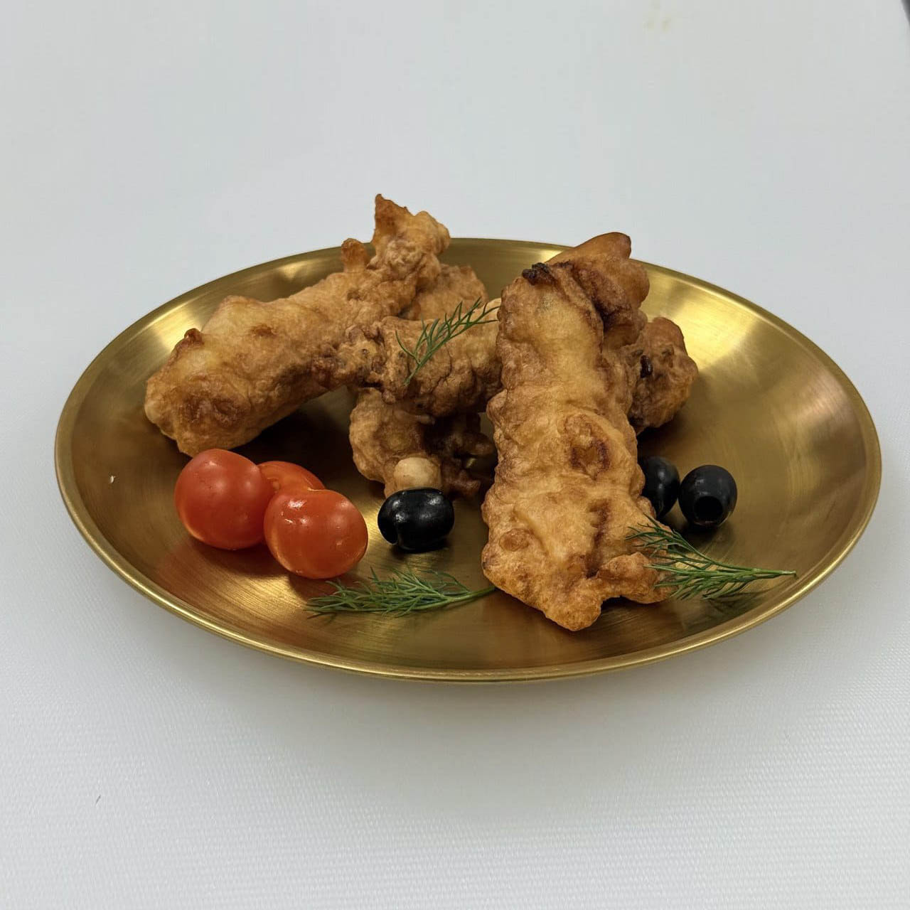Состав: горбуша, масло подсолнечное, яйцо куриное, сыр, мука, зелень, лимоны, заправка лимонная, соус соевый, соль, перец черный молотый