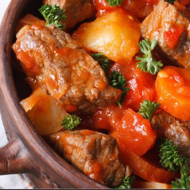Говядина по-татарски с овощами и соусом Демиглас, 10 порций