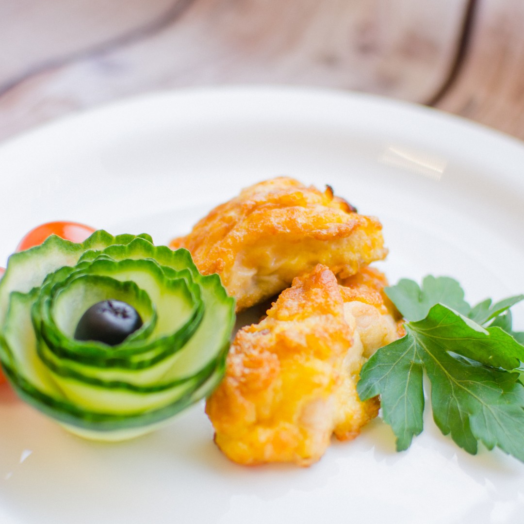 Состав: куриная грудка, масло подсолнечное, мука, молоко, вода, яйцо куриное, соль, приправа карри